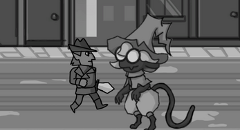 In (K)night detective you find yourself in a strange noir city where the streets are walked by all shorts of fantasy creatures. This very city is curenly terrorized by a robot knight and his shadow army. You control a mysterious elf detective who is the only one to save it from doom.